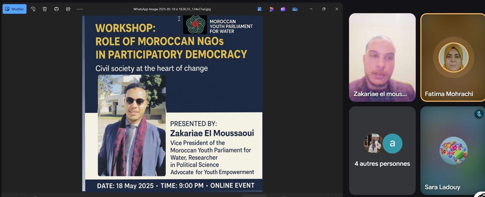 The Moroccan Youth Parliament for Water empowers young people to tackle water-related challenges in Morocco.